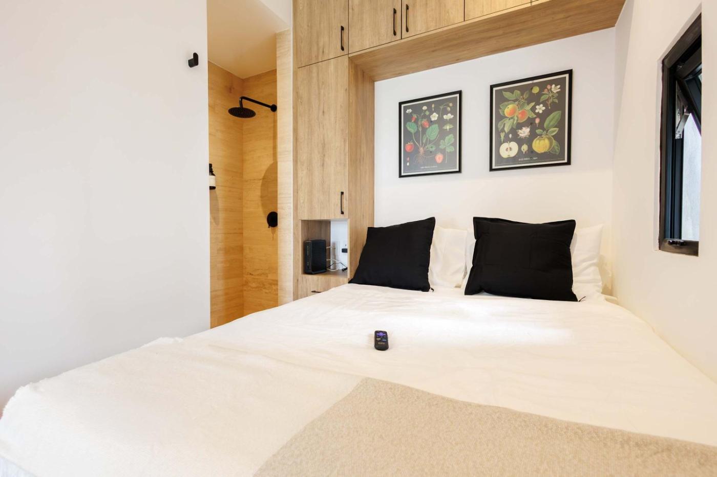 One-Bedroom Apartment. The apartment has 1 bedroom, 1 bathroom and a kitchen. The apartments kitchen is available for cooking and storing food. This apartment offers a washing machine and a TV. The unit has 1 bed.